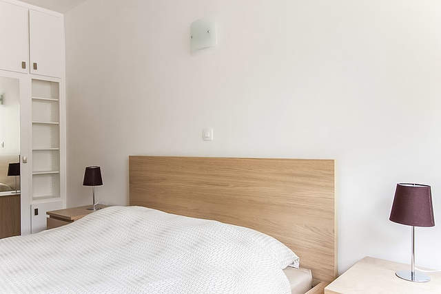 Furnished light 1-bedroom apartment for long-term rental in a nice area of Paris on Avenue de Lamballe close to the Seine. It's a good accommodation option for a couple in a quiet quarter of the city.