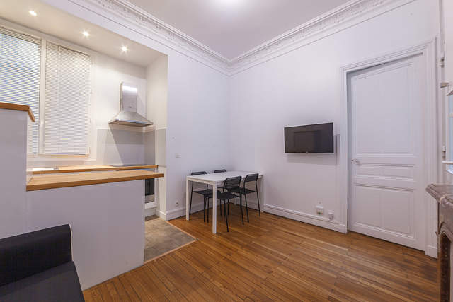 The apartment offers the necessary set of furniture and household appliances for a comfortable stay in Paris. It offers a living room, bathroom with shower, kitchen.