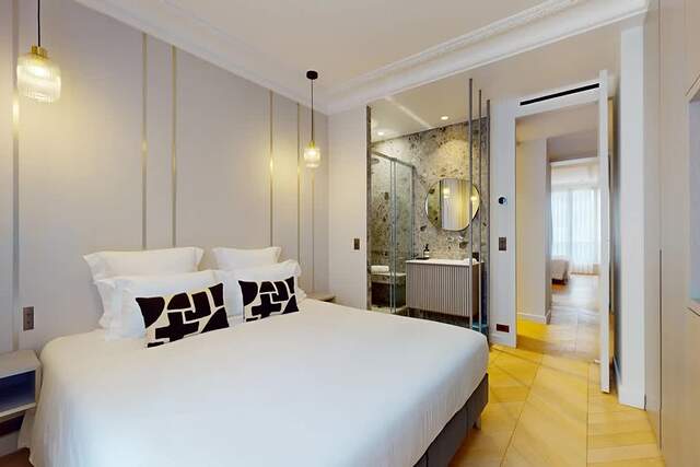 This elegant and spacious apartment of 150 m² is located at Rue Beaujon in the 8th district of Paris. It is two steps away from the Avenue des Champs-Elysées and the Arc de Triomphe. The apartment is located on the 1st French floor of 19th century building equipped with the entrance code and elevator. A spacious entrance hall, a living room, a dining room, a separate kitchen, 3 bedroom, 2 bathrooms. It sleeps 6 people. There is a possibility to have breakfast at this apartment.