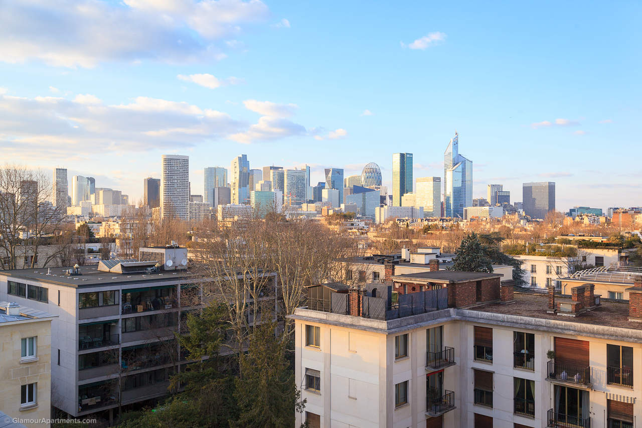 The apartment is located in a prestigious suburb of Paris to the west of the capital, next to Bois de Boulogne and of La Défense business district.