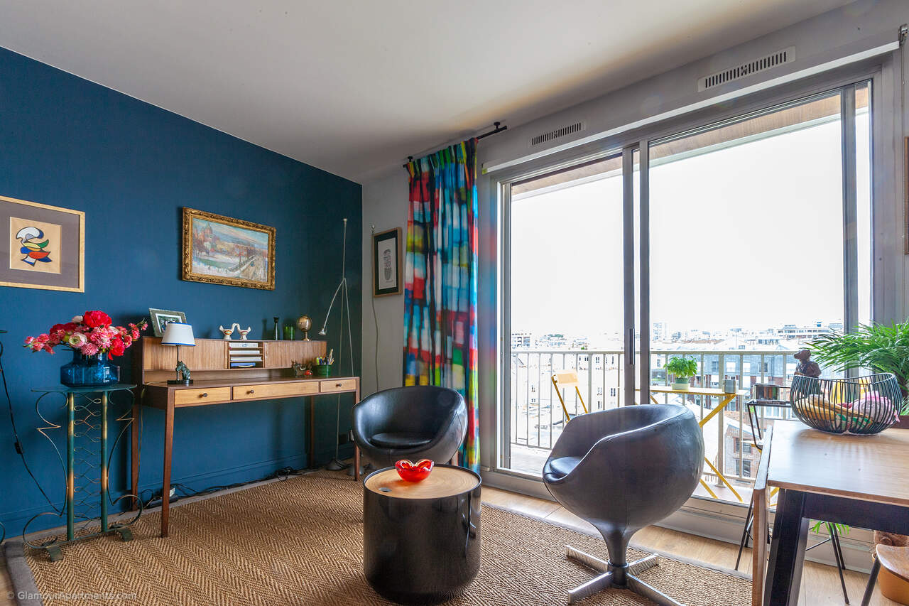 Bright interior; size - 30 square meters; 11th floor; quality furnishings; balcony with an interesting view of Parisian rooftops.