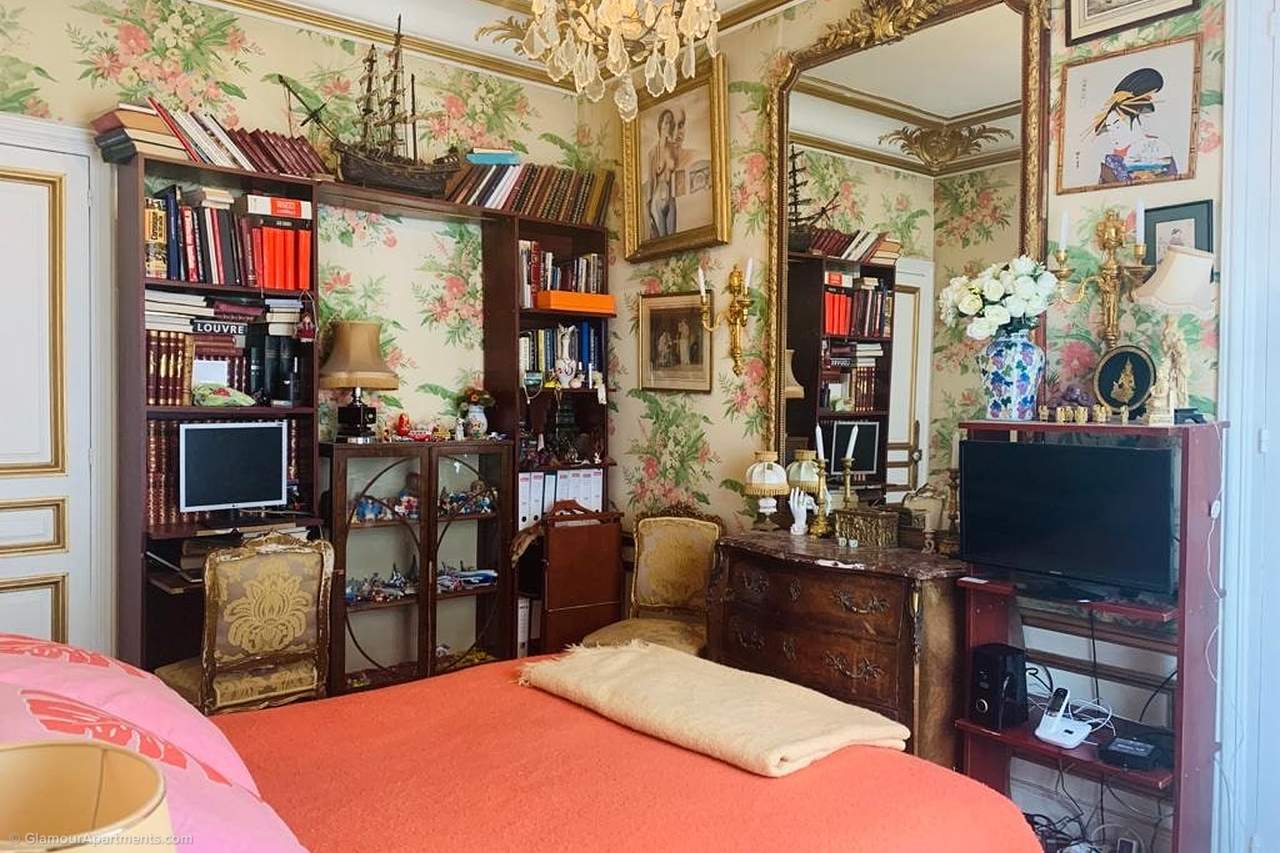 The luxurious apartment of 200 m² is located on the 1st floor of the 19th century building. There is a hall entrance, a living room, a dining room, a music lounge with a piano, 4 bedrooms that sleep 7-8 people, a kitchen, 2 bathrooms, and 2 toilets. There is a carpet surface there. Antique furniture, numerous paintings and statues.