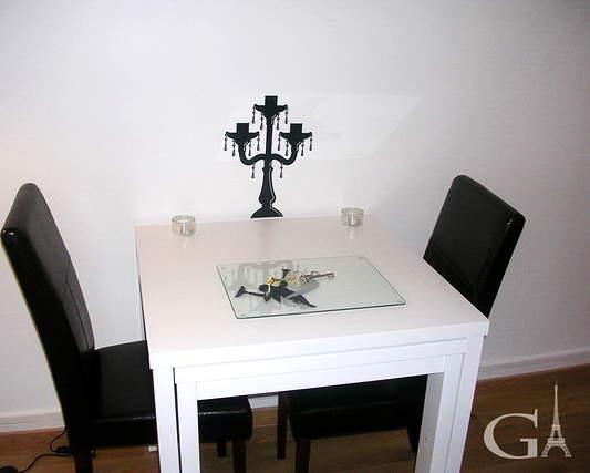 ORGANIZATION: The studio has a small entrance to put all your luggage with a small desk to put your computer and to be connected to the internet by cable, a toilet, an American kitchen, a bathroom independent (shower) and then of the main room with table, high stools, and a sitting area.