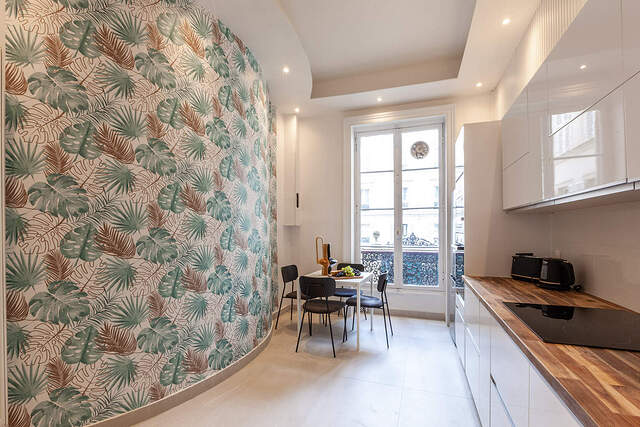 The property comprises a spacious living room, a dining area, a fully equipped modern kitchen, four comfortable bedrooms, three stylish bathrooms, and a welcoming hallway. It's an excellent choice for families or those seeking generous living space in Paris.