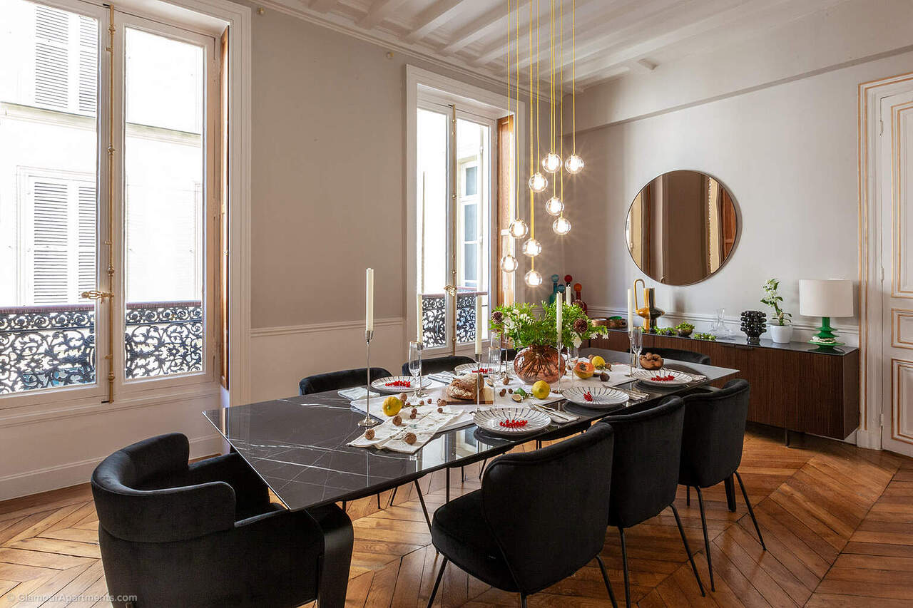 This exclusive address offers an exceptional location close to Opera Garnier, Madeleine Church, and Saint-Lazare train station. The renowned Champs-Elysées, Place de la Concorde, the Louvre Museum, and other iconic Parisian landmarks are within easy reach.