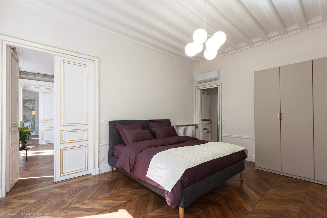 Spanning 200 square meters and situated on the 1st French floor of the building, this residence features elegant parquet flooring, high windows, and a bright, light-filled interior.