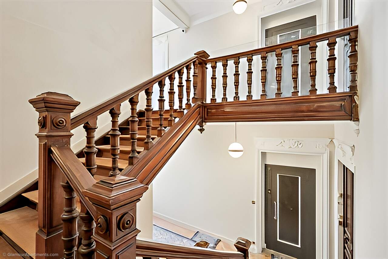 The building, with recently restored common areas, offers a magnificent period wooden staircase and an elevator.