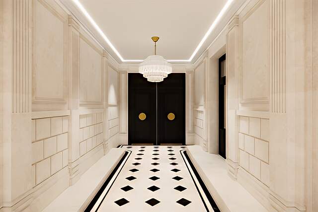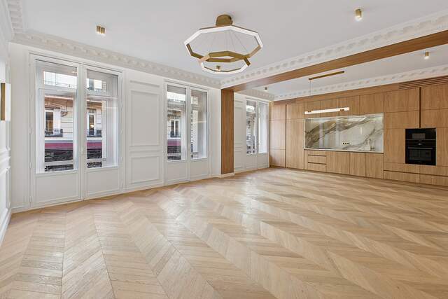 This 125 m² Parisian apartment for sale is located on the 4th floor of a prestigious building just a few steps from Avenue Montaigne.